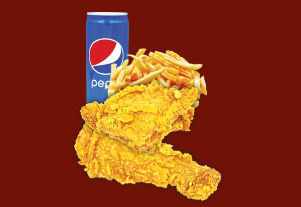 دد 2 قطعة دجاج بروستد عدد 1 سلطة كولسلو 100غم عدد 1 بطاطا كبير عدد 1 مثومة 50م + كاتشاب عدد 1 بيبسي 250 مل عدد 1 خبز