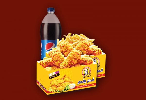 عدد 12 قطعة دجاج بروستد عدد 4 سلطة كولسلو 100غم عدد 1 بطاطا كبير عدد 6 مثومة 50م + كاتشاب عدد 1 بيبسي 2 لتر عدد 5 خبز